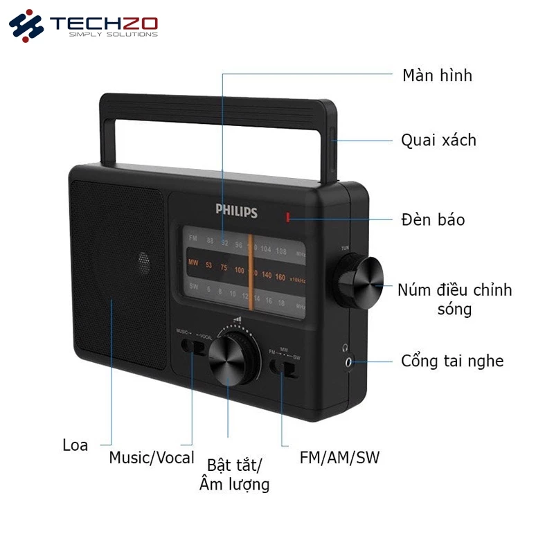 ✔ Dòng Radio chỉnh cơ cổ điển, hỗ trợ 3 băng tần AM – FM – SW.