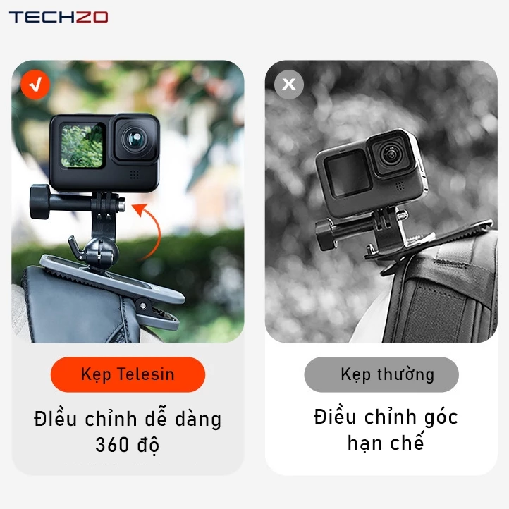 ✔ Kẹp xoay 360 độ, mang đến trải nghiệm quay mượt mà và linh hoạt đa góc.